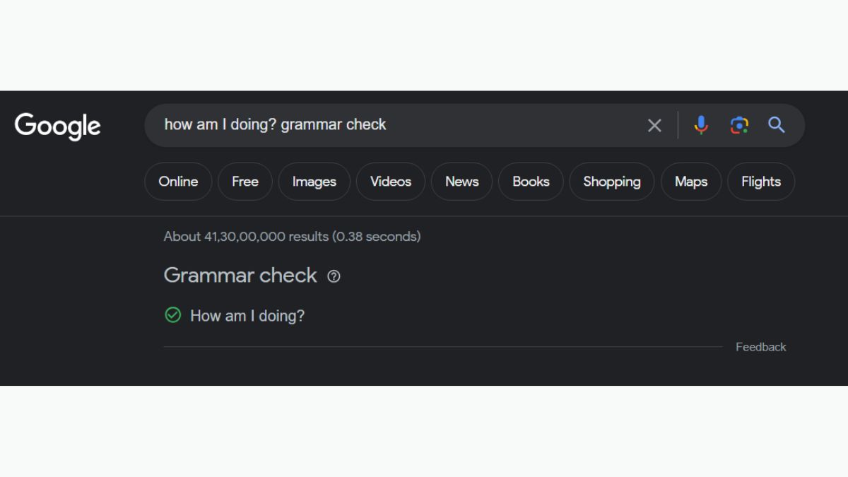 Among other things that Google Search lets you do, grammar check was not an option before. But there was no substantial demand for that because there are hundreds of grammar checkers available online. Besides, Google's own products, such as Docs and Gmail, check the grammar of the text entered by you on a blank page or a new email, respectively.