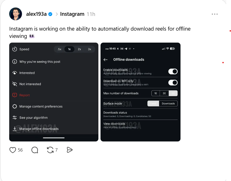 Many users may find it beneficial to watch offline. It is useful on the go, in areas of poor network, or where there is limited data. Such update can enhance the way people use Instagram on a daily basis.