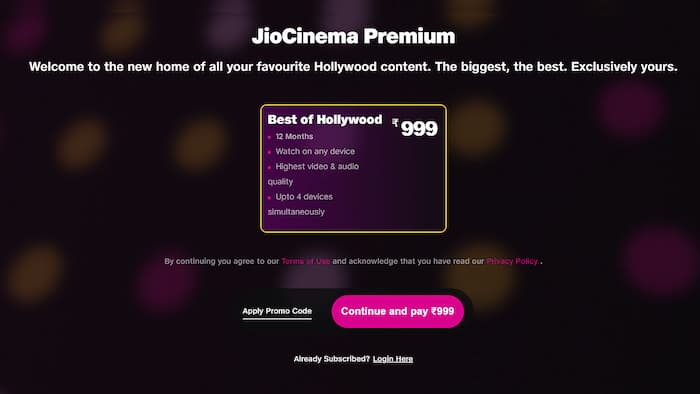 The JioCinema Premium subscription plan costs Rs 999 and will show the aforesaid Hollywood content. The said pricing is for 12 months and users can stream content on any device whether it be a mobile phone or a laptop or a desktop.