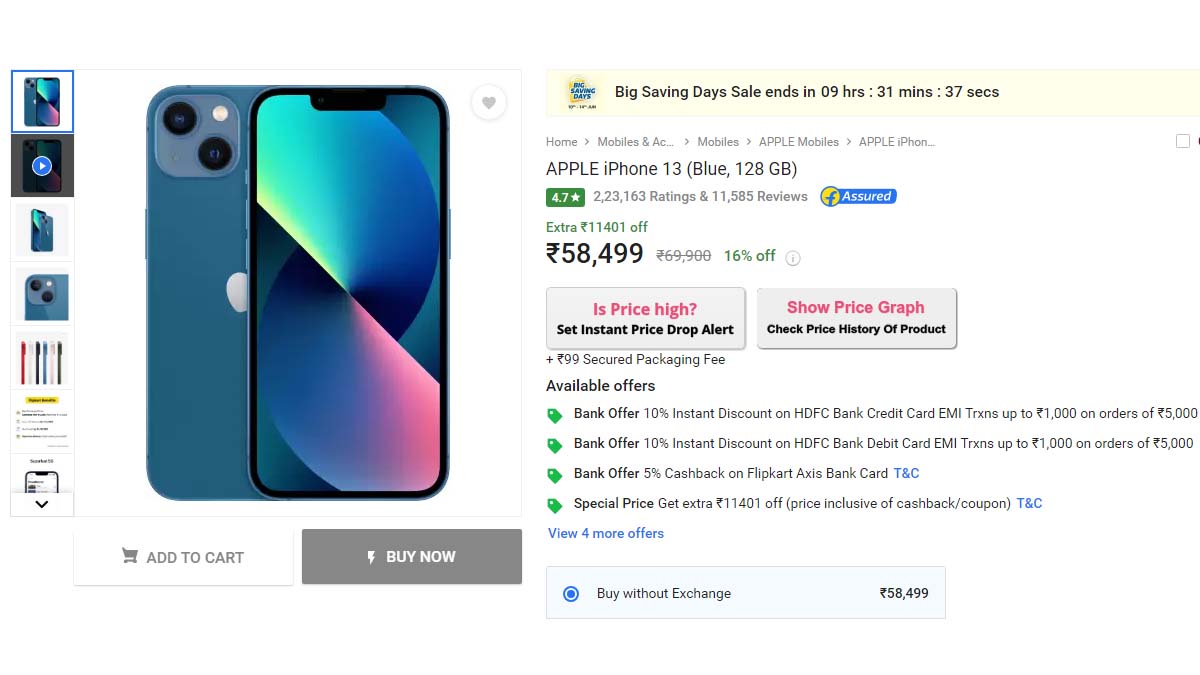Apple iPhone 13 for Rs 58,499 in the Flipkart Big Saving Days sale: Deal