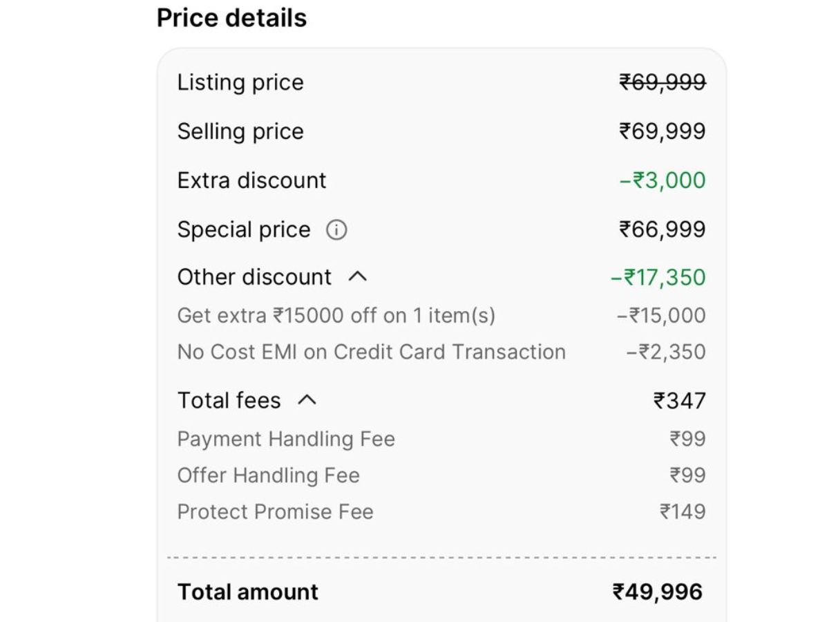 And the Flipkart sale helped to bring down the price to just Rs 51,999. On top of this, HDFC credit card bank offers can further help you to reduce the price under Rs 50,000. However, note that some handling fees may add up to some amount.