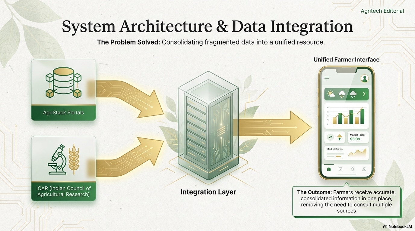 Data Integration – The data integration will combine major information from AgriStock portals and ICAR’s package of practices, allowing farmers to have accurate information in one place.