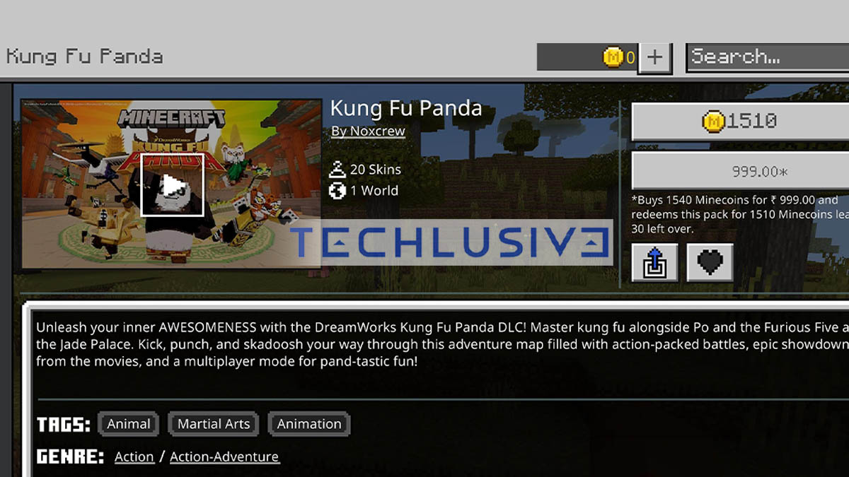 Step 4: The DLC costs 1,510 Minecoins or Rs 999 for 1,540 Minecoins (30 coins will remain in your account after purchase). Tap on the Minecoins and purchase the Rs 999 Minecoins pack.