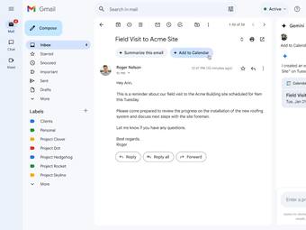 Gmail अपने यूजर्स के लिए Gemini का नया फीचर लेकर आया है। इस फीचर के जरिए यूजर्स मेल में आसानी से Google Calendar इवेंट सेट कर सकेंगे। इसके लिए कंपनी ने डेडिकेटेड एक नया बटन Add to Calendar रिलीज किया है। ध्यान देने वाली बात यह है कि यह बटन आपको सभी मेल पर उपलब्ध नहीं होगा। यह बटन सिर्फ उन्हीं मेल में दिखाई देगा, जिसमें किसी इवेंट या डेट से जुड़ी जानकारी शेयर की जा रही हो। इसके लिए AI चैटबॉट खुद-ब-खुद ऐसे मेल की पहचान करेगा और यूजर्स को नया कैलेंडर बटन देगा। आइए जानते हैं इससे जुड़ी सभी डिटेल्स।