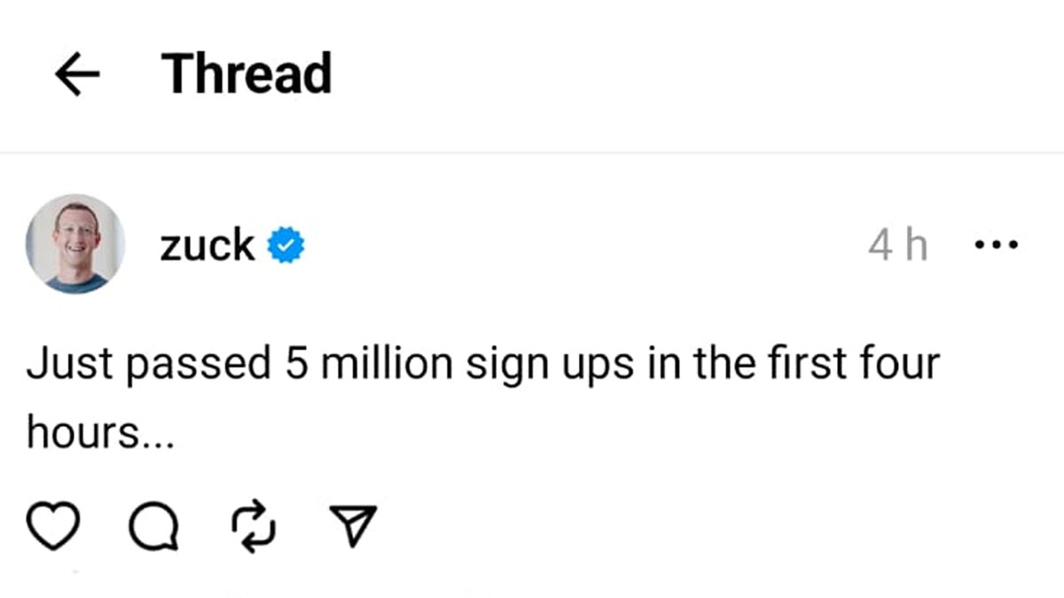 मार्क जुकरबर्ग ने अपने थ्रेड्स पोस्ट में बताया है कि शुरुआती 4 घंटों में ही 5 मिलियन से ज्यादा साइन-अप्स हो गए हैं। Meta के इस नए माइक्रोब्लॉगिंग प्लेटफॉर्म की लोकप्रियता की वजह इसका इंस्टाग्राम से लिंक होना हो सकता है। Instagram के पास फिलहाल 2 बिलियन से ज्यादा यूजर्स हैं। Instagram यूजर्स केवल फोटो या शॉर्ट वीडियो पोस्ट कर सकते हैं। ऐसे में कंपनी उन यूजर्स को Twitter की तरह टेक्स्ट, लिंक आदि पोस्ट करने के लिए एक नया प्लेटफॉर्म दे रही है।