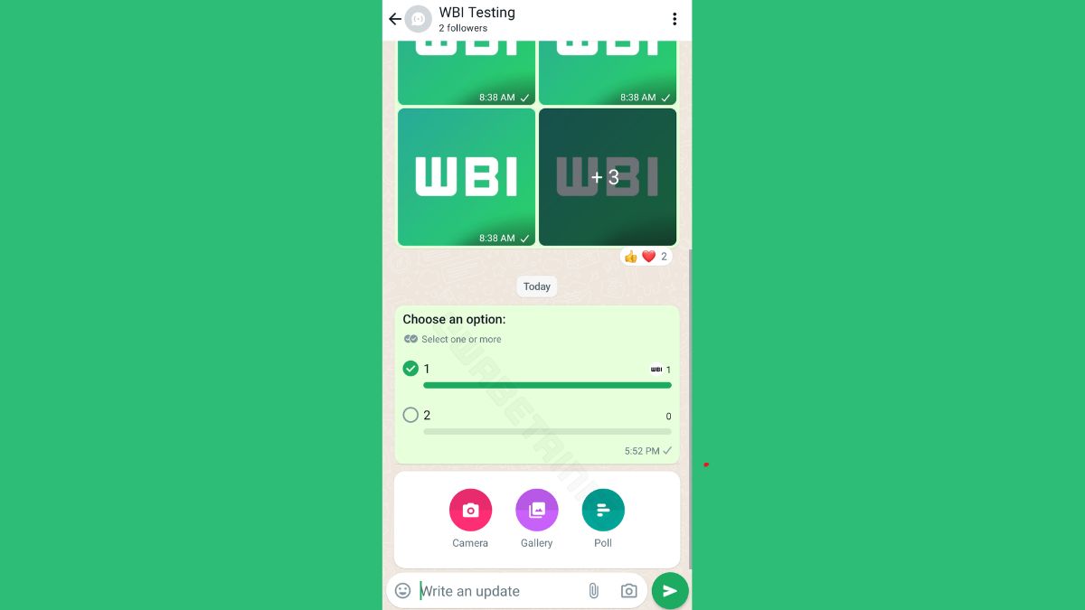 ध्यान रखें कि अभी इस फीचर को कुछ बीटा टेस्टर्स के लिए टेस्टिंग के तौर पर जारी किया गया है। भविष्य में आने वाले अपडेट के साथ यह सुविधा सभी के लिए जारी की जाएगी। चैनल्स के अलावा अन्य ग्रुप और चैट में पोल क्रिएट कर सकते हैं।