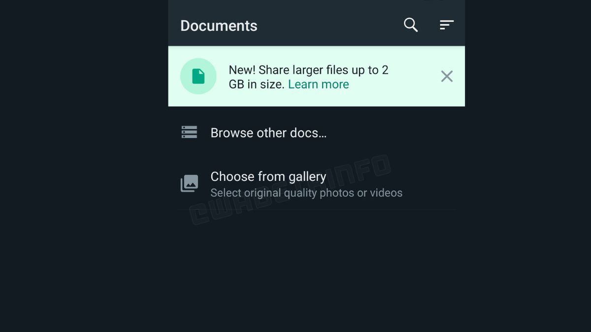 WhatsApp ओरिजनल क्वालिटी में फोटो और वीडियो शेयर करने के लिए एक नया ऑप्शन मिल रहा है। अब डॉक्यूमेंट पिकर में यूजर्स को गैलेरी का ऑप्शन दिखेगा।