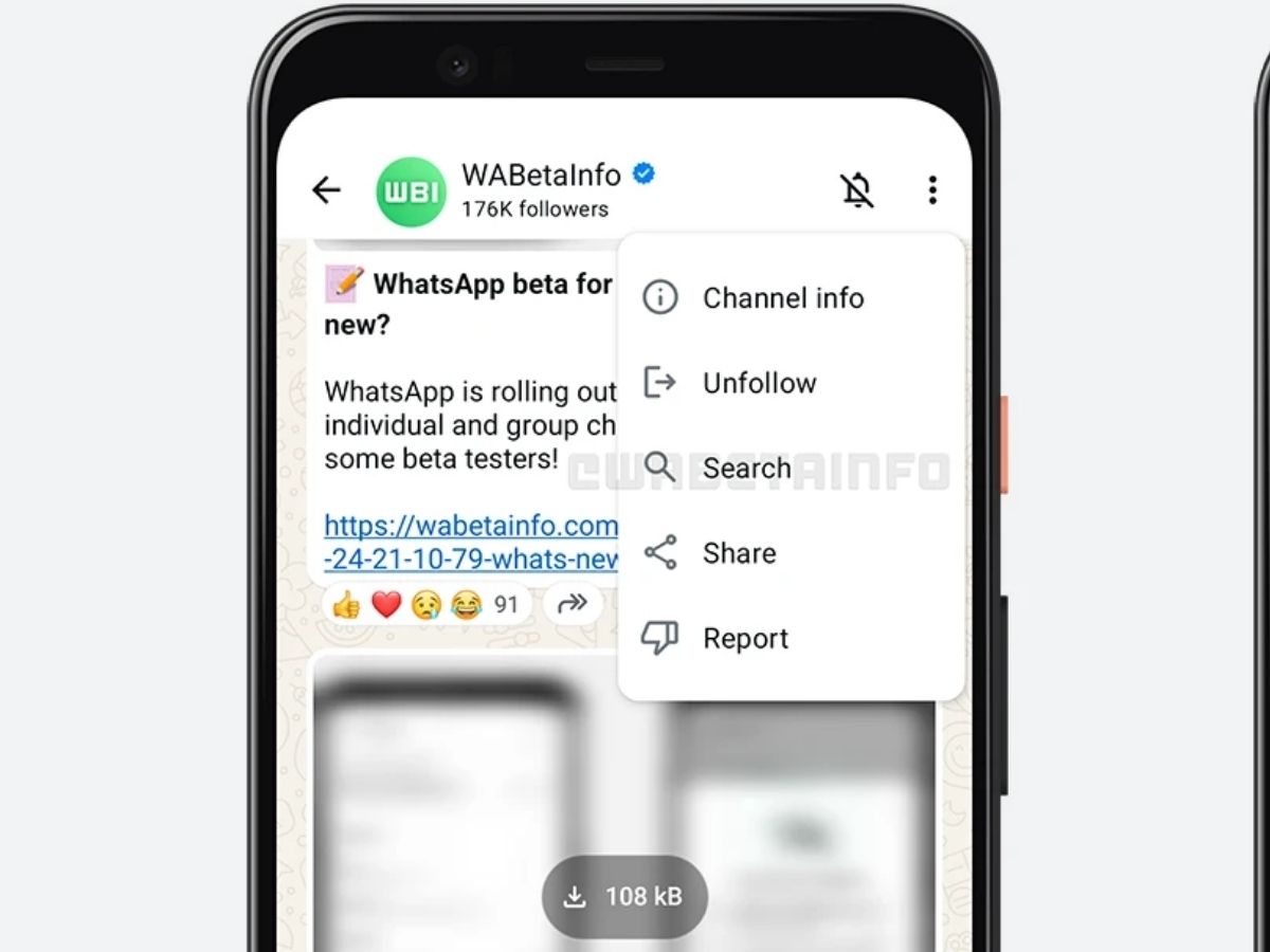 Channels में सर्च के लिए दो ऑप्शन मिल रहे हैं। रिपोर्ट में दिए गए स्क्रीनशॉट में Channels ओपन करने के बाद राइट साइड में सबसे ऊपर थ्री डॉट आइकन पर क्लिक करते ही यूजर्स को कई ऑप्शन दिखेंगे। इसमें अब Channel info, Unfollw, Share और Report के साथ यूजर्स को एक नया Search ऑप्शन भी मिल रहा है। इस पर क्लिक करके वे चैनल में आए किसी भी अपडेट के लिए कुछ लिखकर सर्च कर पाएंगे। इसके बाद ऐप आपको उससे जुड़े अपडेट दिखाएगा।