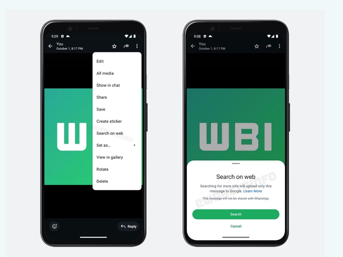 जब यूजर्स किसी फोटो को सर्च करते हैं, तो उसे सर्च करने के लिए Google पर अपलोड किया जाएगा। यह ध्यान रखना जरूरी है कि फोटो Google को भेजी जाती है, लेकिन इसे कभी भी WhatsApp के साथ शेयर नहीं किया जाता है।