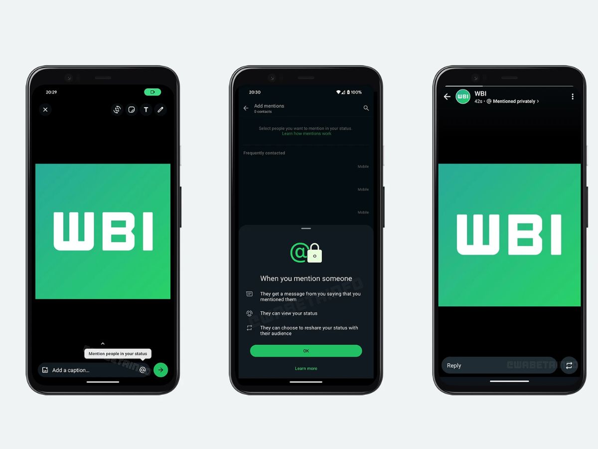 WhatsApp ने अपने यूजर्स के लिए Status Update mention फीचर रोल आउट किया है। यह फीचर इंस्टाग्राम के स्टोरी पर किसी को मेंशन करने जैसा है।