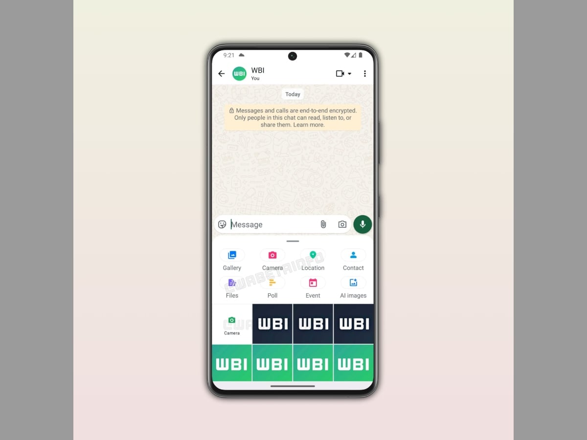ऊपर लगे स्क्रीनशॉट को देखें, तो व्हाट्सएप की चैट विंडो में मौजूद अटैचमेंट मेन्यू में कैमरे के बगल में गैलरी इंटरफेस नजर आ रहा है, जिसमें हाल ही में क्लिक की गई फोटो और वीडियो शामिल हैं। यूजर्स इन फोटो व वीडियो पर टैप करके सेंड कर सकते हैं। इससे यूजर्स को मीडिया फाइल साझा करने के लिए अलग से गैलरी ओपन नहीं करनी पड़ेगी।