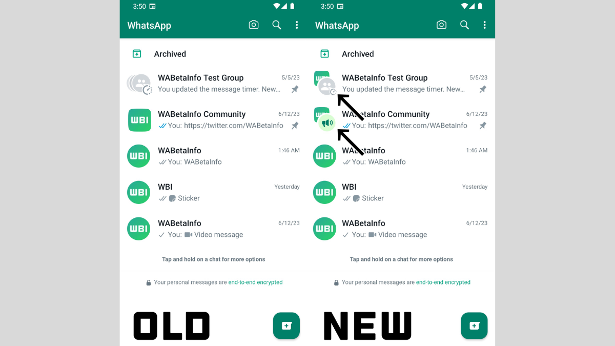 आप स्क्रीनशॉट में नए और पुराने वर्जन के बीच अंतर देख सकते हैं। नए वर्जन में कम्युनिटी से लिंक ग्रुप पर कई आइकन देखने को मिल रहे हैं। इससे साफ पता चल रहा है कि कौन सा ग्रुप कम्युनिटी से लिंक है। इस नए आइकन को व्हाट्सऐप