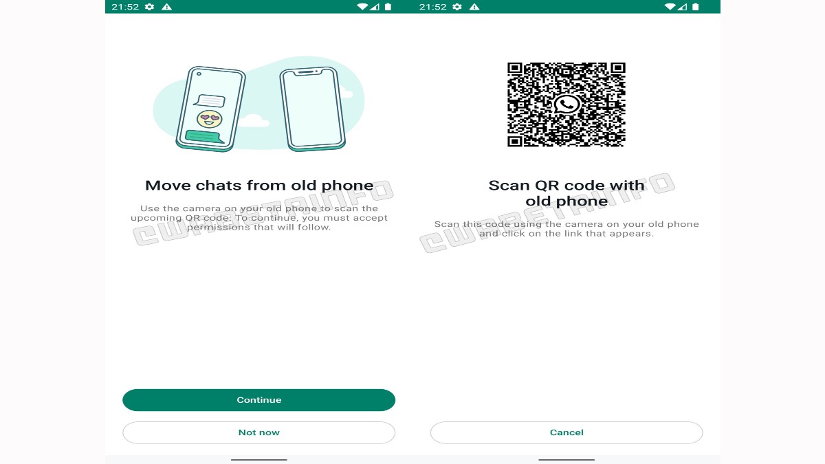 रिपोर्ट में स्क्रीनशॉट भी दिया गया है। इसमें QR Code दिया गया है। फोटो में बताया गया था कि कैसे व्हाट्सऐप यूजर्स को भविष्य में पुराने एंड्रॉइड डिवाइस पर अपनी चैट हिस्ट्री को माइग्रेट करने की सुविधा देगा।
