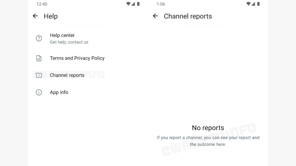 रिपोर्ट में एक स्क्रीन शॉट भी दिया गया है। इसमें ऐप सेटिंग के भीतर Help सेक्शन में Channel Reports का ऑप्शन साफ दिख रहा है। इस पर क्लिक करते ही यूजर चैनल रिपोर्ट देख पाएंगे। इसका मतलब है कि अगर यूजर किसी चैनल की रिपोर्ट करता है तो वह उसको और उसके रिजल्ट को इस सेक्शन में देख पाएगा।