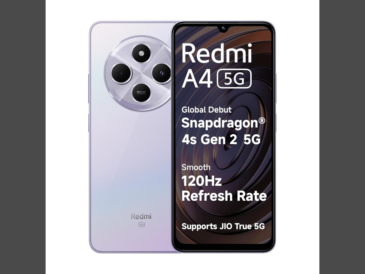 Redmi A4 में Snapdragon 4s Gen 2 प्रोसेसर और 64GB स्टोरेज है। इसमें 4GB रैम मिलती है। इस फोन में 17.47cm वाला 120 हर्ट्ज रिफ्रेश रेट वाला डिस्प्ले दिया गया है। इसमें 50MP का रेयर और 5MP का फ्रंट कैमरा मिलता है। इसके अलावा, फोन में 5160mAh की बैटरी दी गई है। इस फोन की कीमत 7,999 रुपये है। इस मोबाइल फोन को 384 रुपये प्रति माह की ईएमआई मिल रही है। और पढें: 4000 Nits ब्राइट डिस्प्ले, 50MP फ्रंट कैमरा और 7000mAh बैटरी वाले Realme Narzo 90 5G को 816 रुपये देकर लाएं घर, Amazon का Offer