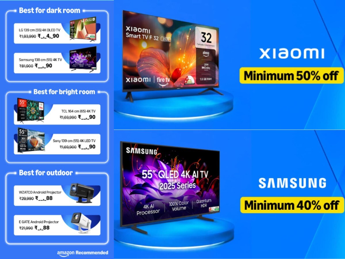 Amazon ने सेल से पहले कुछ बेहतरीन डील्स का खुलासा किया है। इसमें 55 इंच के स्मार्ट टीवी पर सबसे ज्यादा छूट दी जा रही है। LG का 55 इंच OLED B4 Series 4K टीवी इस सेल में 1,15,000 रुपये से कम में मिल सकता है। वहीं Samsung का 55 इंच Vision AI 4K टीवी केवल 50,000 रुपये से कम कीमत में उपलब्ध होगा। इन दोनों डील्स में बैंक ऑफर्स और नो कॉस्ट EMI की सुविधा भी शामिल होगी। और पढें: Amazon Prime Day 2025 Sale की तारीख का ऐलान, इस दिन शुरू हो रही मेगा सेल