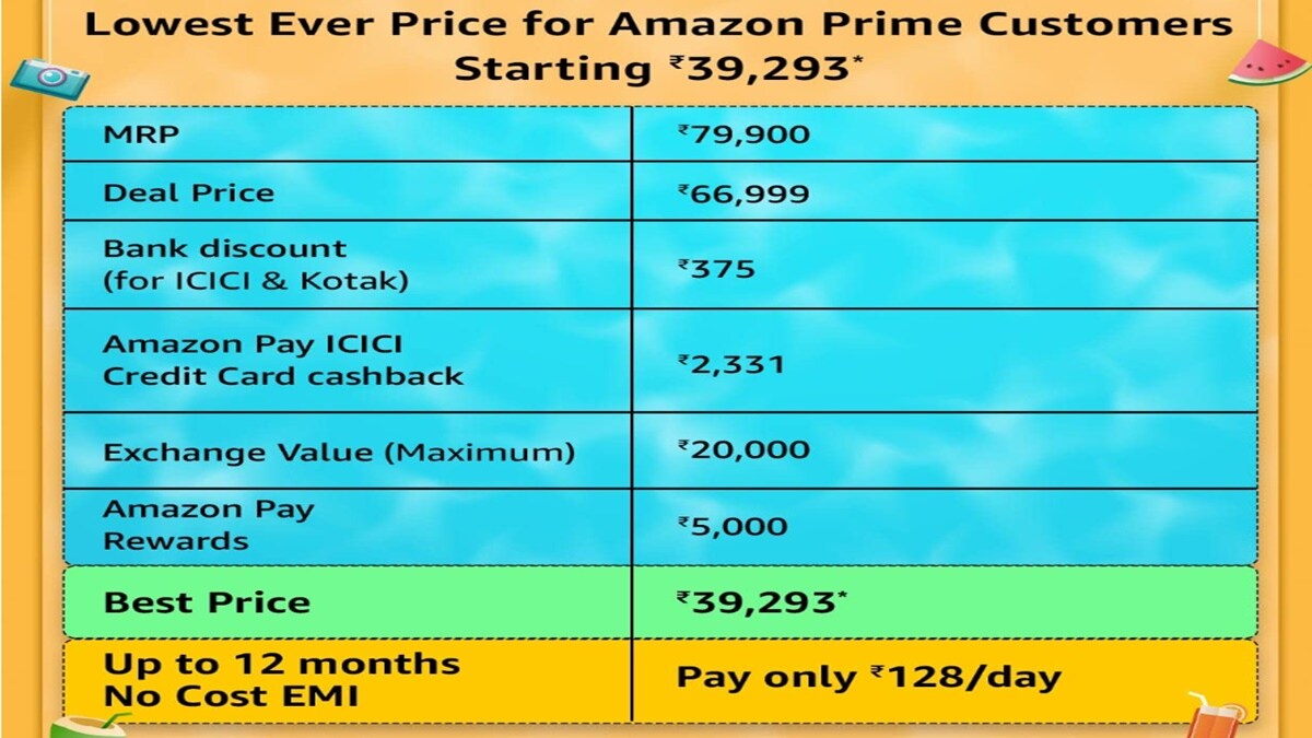 अमेजन पर लिस्टेड पोस्टर के मुताबिक, iPhone 14 को 39,293 रुपये में खरीदा जा सकेगा। साथ ही इसे 128 रुपये प्रति दिन देकर भी घर ला सकते हैं। इस ऑफर को समझाने के लिए अमेजन पर पूरी जानकारी डिटेल में दी है।