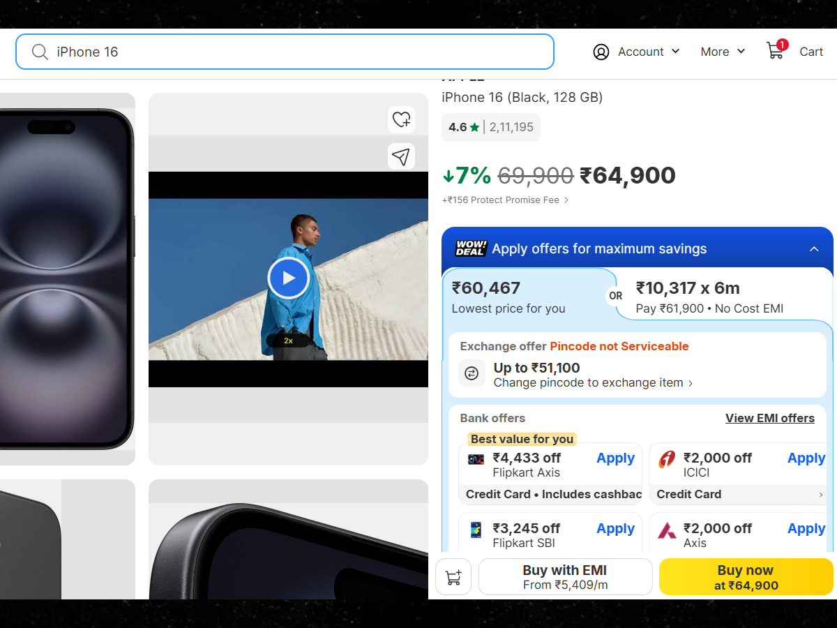 iPhone 16 अब भारी छूट के साथ ग्राहकों के लिए शानदार डील बन गया है। लॉन्च के समय जिसकी कीमत 79,900 रुपये थी, वही फोन अब Flipkart पर काफी सस्ते में मिल रहा है। आइए जानते हैं...
