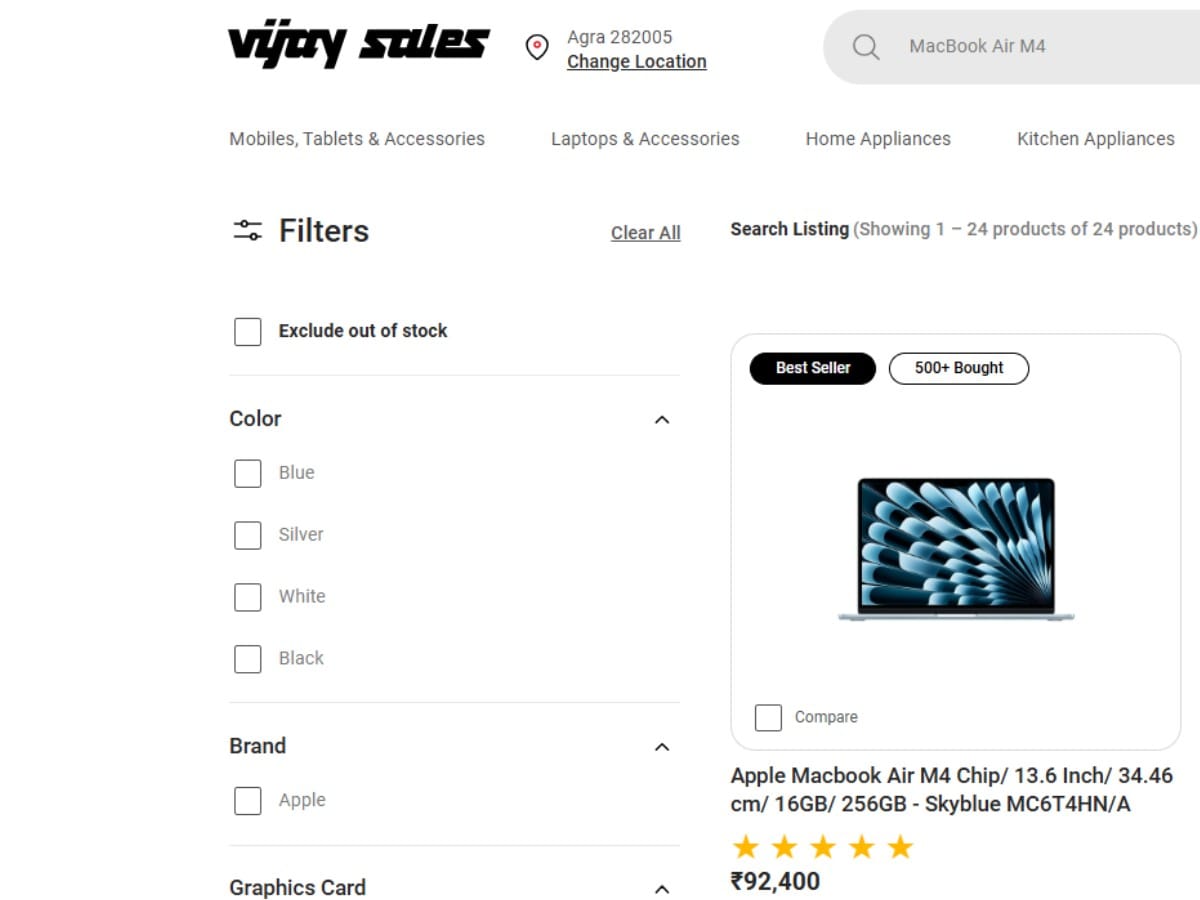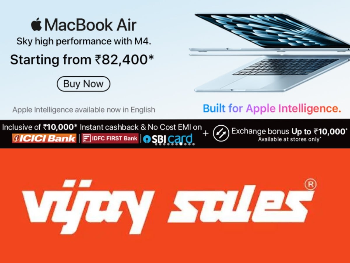 लॉन्च के समय MacBook Air M4 (16GB RAM और 256GB SSD) की कीमत ₹99,900 थी लेकिन अब विजय सेल्स पर यह लैपटॉप Sky Blue कलर में केवल ₹92,400 में उपलब्ध है। यानी सीधे ₹7,500 का डिस्काउंट। इसके अलावा अगर आप ICICI Bank या SBI Bank के क्रेडिट कार्ड से पेमेंट करते हैं, तो आपको अतिरिक्त ₹10,000 का इंस्टेंट डिस्काउंट भी मिलेगा। इस तरह MacBook Air M4 की इफेक्टिव कीमत करीब ₹82,400 रह जाती है। यानी कुल बचत लगभग ₹17,910 तक की। यह ऑफर सीमित समय और चुनिंदा कलर्स पर ही उपलब्ध है, इसलिए अगर आप इसे खरीदने का सोच रहे हैं तो जल्दी करना समझदारी होगी।