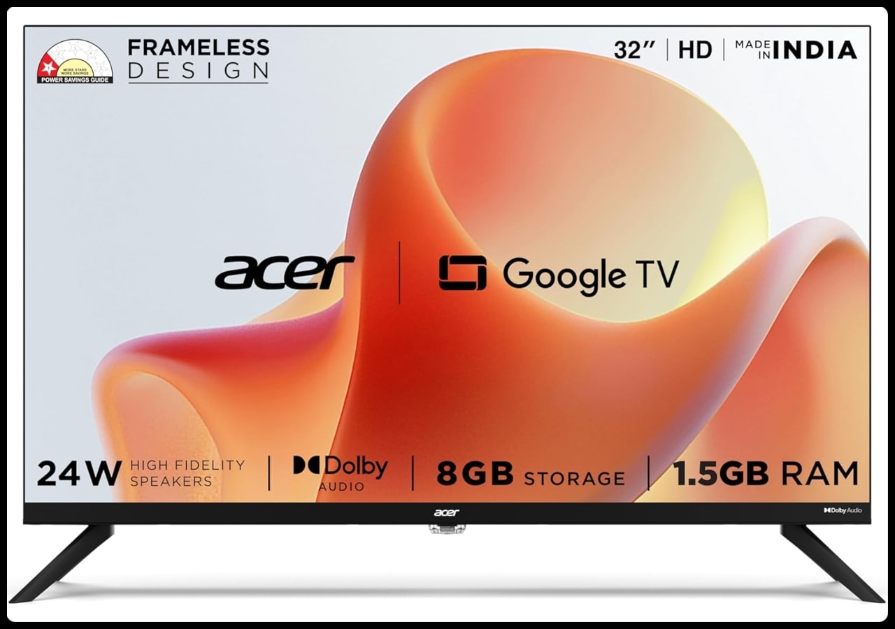 Acer 32 inches G Plus Series HD Ready LED Smart Google TV AR32HDGGR2841AD को Amazon सेल के दौरान आप 9,990 रुपये में खरीद सकते हैं। साथ ही इस टीवी पर बैंक कार्ड के जरिए 4000 रुपये तक का डिस्काउंट भी मिलेगा। ऐसे में इसे आप 7000 रुपये से कम में खरीद सकेंगे। फीचर्स की बात करें, तो टीवी में 32 इंच HD स्क्रीन, 24W स्पीकर, 1.5GB RAM व 8GB स्टोरेज मिलती है। साथ ही टीवी में कई ओटीटी ऐप्स का सब्सक्रिप्शन भी मौजूद है। और पढें: Wobble स्मार्टफोन की इंडिया लॉन्च डेट कंफर्म, Amazon पर होगी सेल