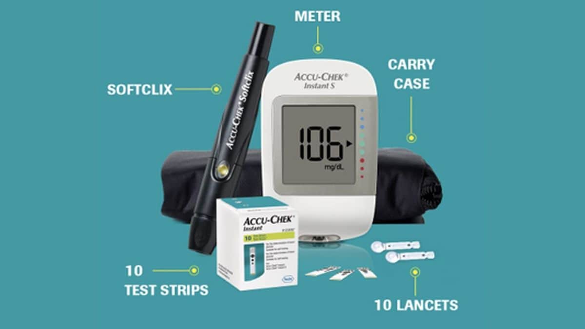 Accu-Chek Instant S Blood Glucose Glucometer Kit अमेजन पर 799 रुपये की कीमत में लिस्ट है। इसे अभी 16 प्रतिशत डिस्काउंट के साथ 675 रुपये में बेचा जा रहा है। इस किट के साथ 10 Strips, 10 Lancets और Lancing device मिलता है।