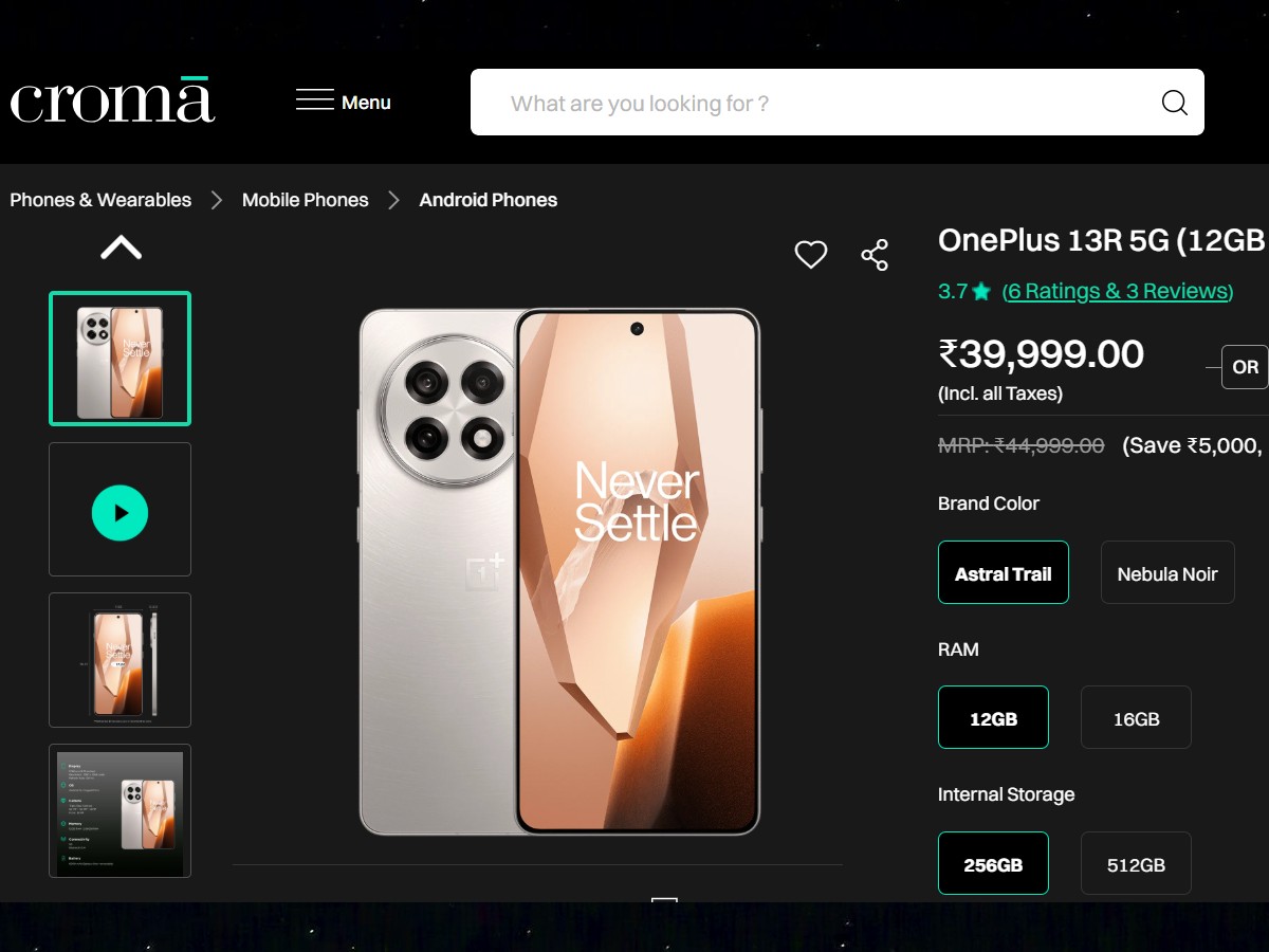 OnePlus 13R अब 39,999 रुपये में मिल रहा है, यानी आपको 5000 रुपये की बचत हो रही है। इसमें 6.78 इंच का 120Hz LTPO डिस्प्ले मिलता है। Snapdragon 8 Gen 3 इसे बहुत तेज बनाता है। ट्रिपल कैमरा सेटअप अच्छी फोटो देता है और 6,000mAh की बैटरी 80W SUPERVOOC चार्जिंग के साथ बहुत जल्दी चार्ज हो जाती है। यह फोन परफॉर्मेंस और बैटरी दोनों में मजबूत है।