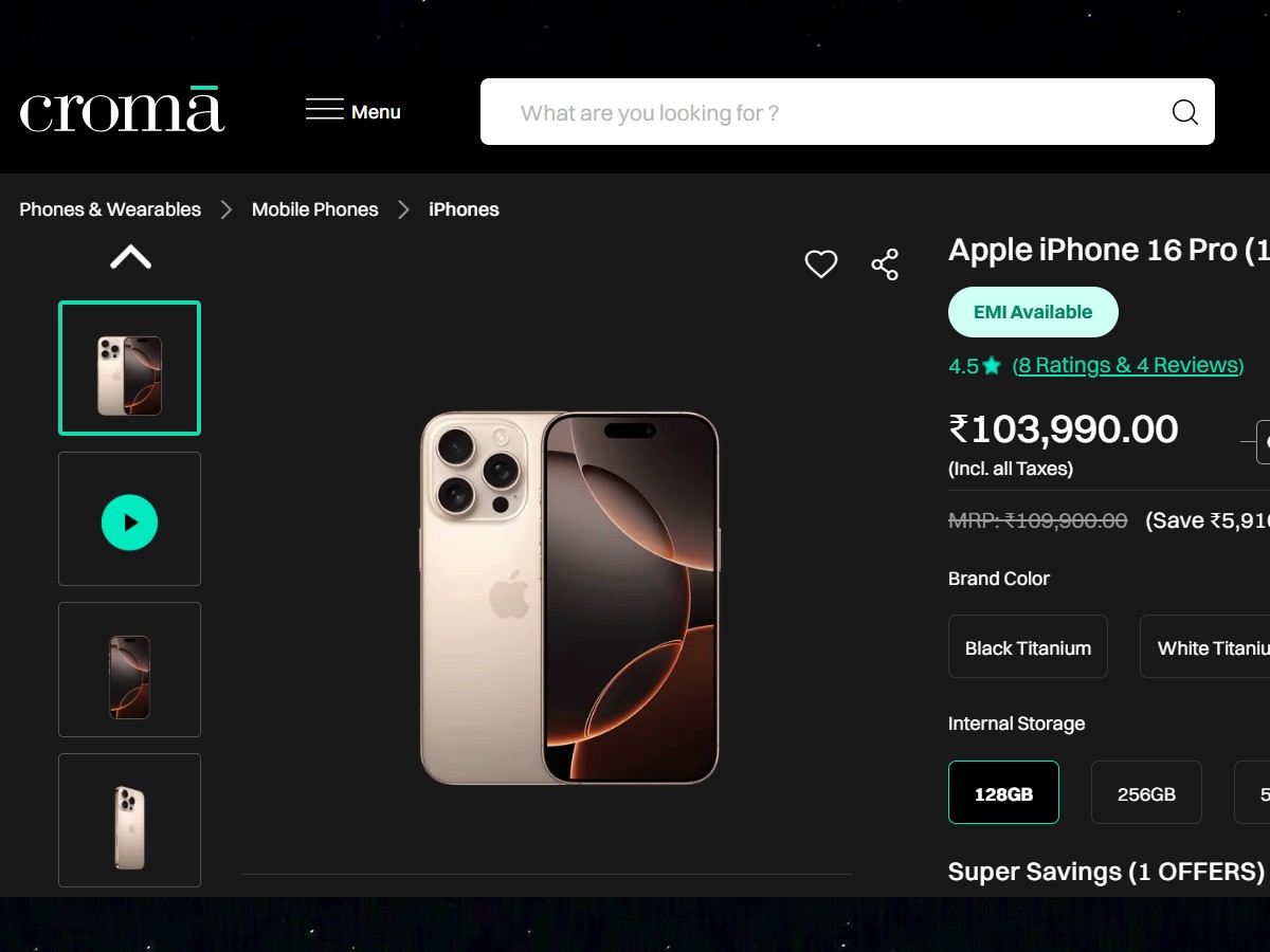 iPhone 16 Pro की कीमत 1,03,990 रुपये है और यह प्रोफेशनल यूजर्स के लिए बनाया गया है। इसकी 6.3 इंच की ProMotion 120Hz डिस्प्ले काफी स्मूद है। इसमें A18 Pro चिप है, जो गेमिंग और वीडियो एडिटिंग जैसे भारी काम भी आसानी से संभाल लेती है। इसका 48MP + 48MP + 12MP का ट्रिपल कैमरा सेटअप 4K वीडियो और बढ़िया फोटो के लिए काफी अच्छा है। 12MP फ्रंट कैमरा, IP68 रेटिंग और एडवांस्ड कैमरा कंट्रोल इसे एक प्रीमियम फ्लैगशिप बनाते हैं।
