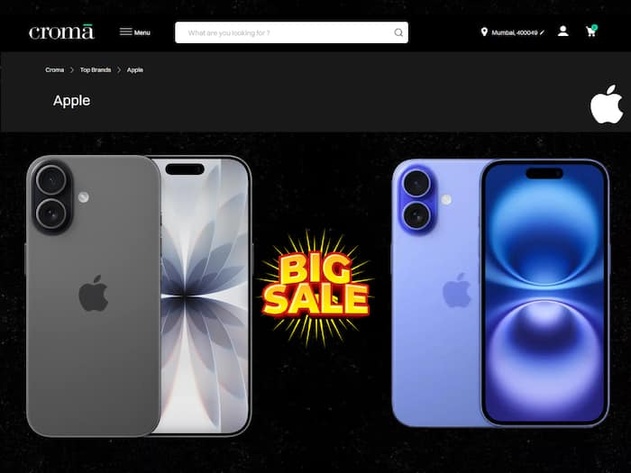 Croma ने इंडिया में अपनी Everything Apple Sale शुरू कर दी है, जिसमें iPhone, iPad, MacBook और Apple के बाकी प्रोडक्ट्स पर शानदार ऑफर्स मिल रहे हैं। इस सेल के दौरान ग्राहक अपने पुराने फोन का एक्सचेंज करके या सीधा खरीदारी करके Apple प्रोडक्ट्स को बाजार की तुलना में काफी कम कीमत में खरीद सकते हैं। और पढें: Valentine’s Day के मौके iPhone 16 अपने पार्टनर को करें गिफ्ट, सिर्फ यहां मिल रहा इतना बड़ा ऑफर