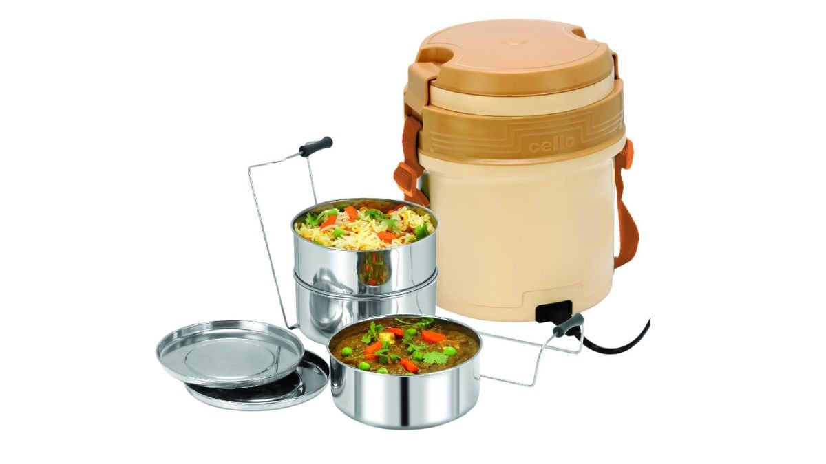 Cello Newton Plastic Electric Lunch Box को अमेजन से 1234 रुपये में खरीदा जा सकता है। यह लंच बॉक्स 3 सेट के साथ आता है। इलेक्ट्रिक पावर कॉर्ड को रखने के लिए लंच बॉक में इन-बिल्ट स्टोरेज दी गई है। साथ ही में इसमें ऑन और ऑफ इंडिकेटर भी मिलता है।