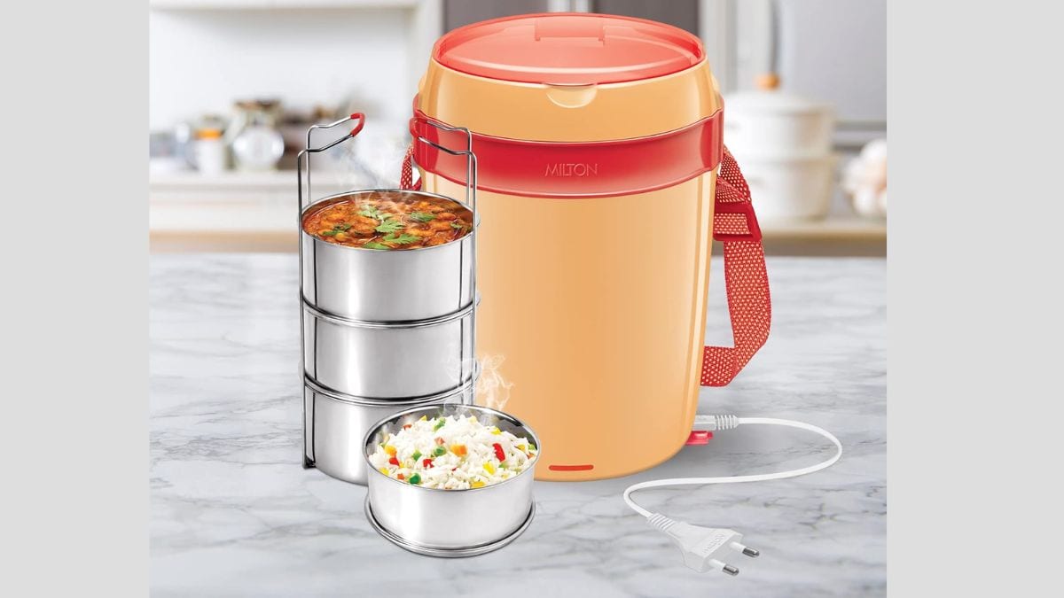 MILTON Euroline Futron Plastic Electric Tiffin Set को अमेजन से 1369 रुपये में खरीदा जा सकता है। यह लंच बॉक्स 30 मिनट के अंदर खाना गर्म करने की क्षमता रखता है। यह खाना गर्म करने में सिर्फ 80W पावर लेता है।