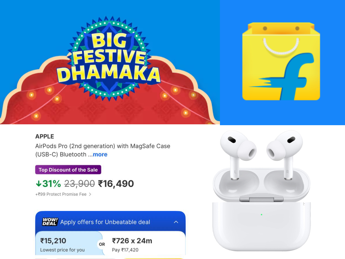 Flipkart की Festive Dhamaka Sale 2025 इस समय जोरों पर है और इस बार ग्राहकों के लिए जबरदस्त ऑफर्स की बौछार हो रही है। इस सेल में Samsung, Apple, Xiaomi, Oppo, Vivo, Nothing और Sony जैसे बड़े ब्रांड्स के कई इलेक्ट्रॉनिक प्रोडक्ट्स पर भारी छूट दी जा रही है। स्मार्टफोन से लेकर स्मार्ट टीवी, हेडफोन, होम अप्लायंसेज, लैपटॉप और PC तक पर ऑफर मिल रहे हैं। सबसे ज्यादा चर्चा में है Apple AirPods Pro 2, जिस पर इस बार Flipkart ने ऐसा ऑफर दिया है जिसे देखकर हर म्यूजिक लवर खुश हो जाएगा।