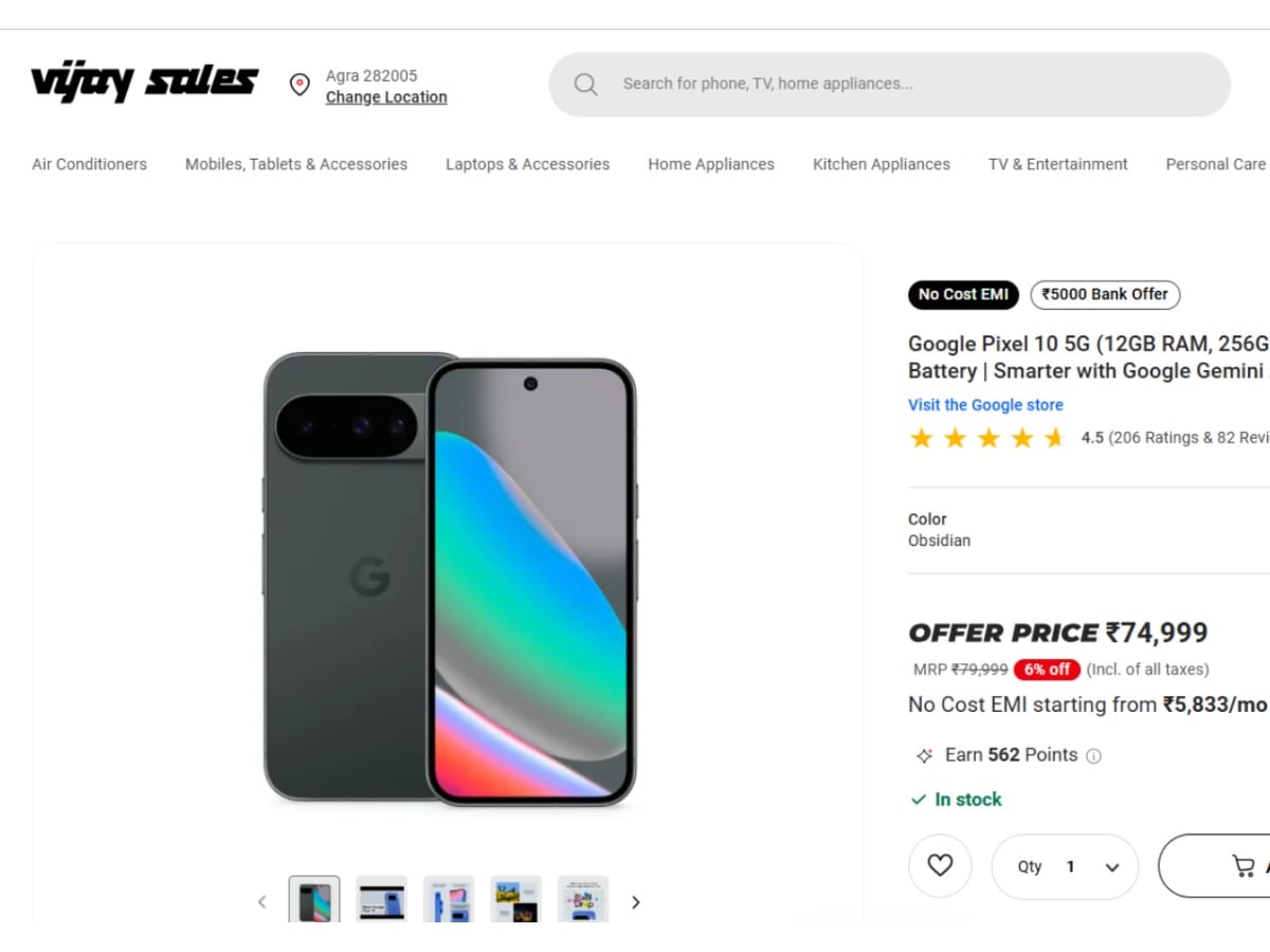 Google Pixel 10 पर कुल ₹10,000 तक का डिस्काउंट मिल रहा है। इसमें ₹5000 की इंस्टेंट छूट और ₹5000 का बैंक ऑफर शामिल है।