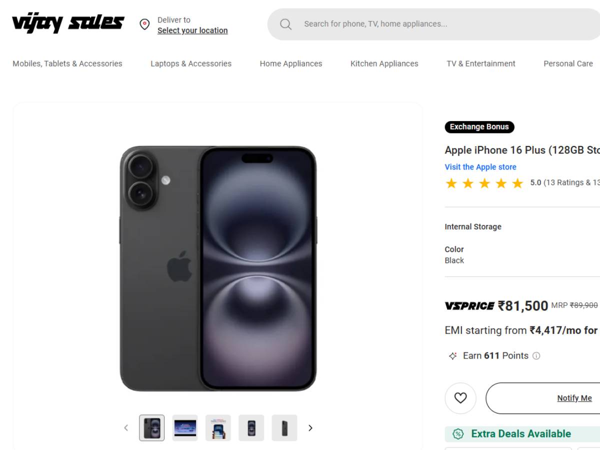 दोनों फोन की स्पेसिफिकेशन भी काफी इम्प्रेसिव हैं। iPhone 16 में 6.1 इंच की Super Retina XDR OLED डिस्प्ले है, जबकि iPhone 16 Plus में बड़ा 6.7 इंच का स्क्रीन है। दोनों में Apple A18 चिपसेट है जो परफॉर्मेंस के मामले में काफी पावरफुल है। कैमरे की बात करें तो रियर में 48 मेगापिक्सल का प्राइमरी और 12 मेगापिक्सल का अल्ट्रा-वाइड कैमरा है। सेल्फी और वीडियो कॉलिंग के लिए दोनों में 12 मेगापिक्सल का फ्रंट कैमरा दिया गया है। और पढें: Vijay Sales पर Apple Days सेल हुई शुरू, iPhone 17, MacBook Air और iPads सब पर मिल रहा भारी-भरकम डिस्काउंट