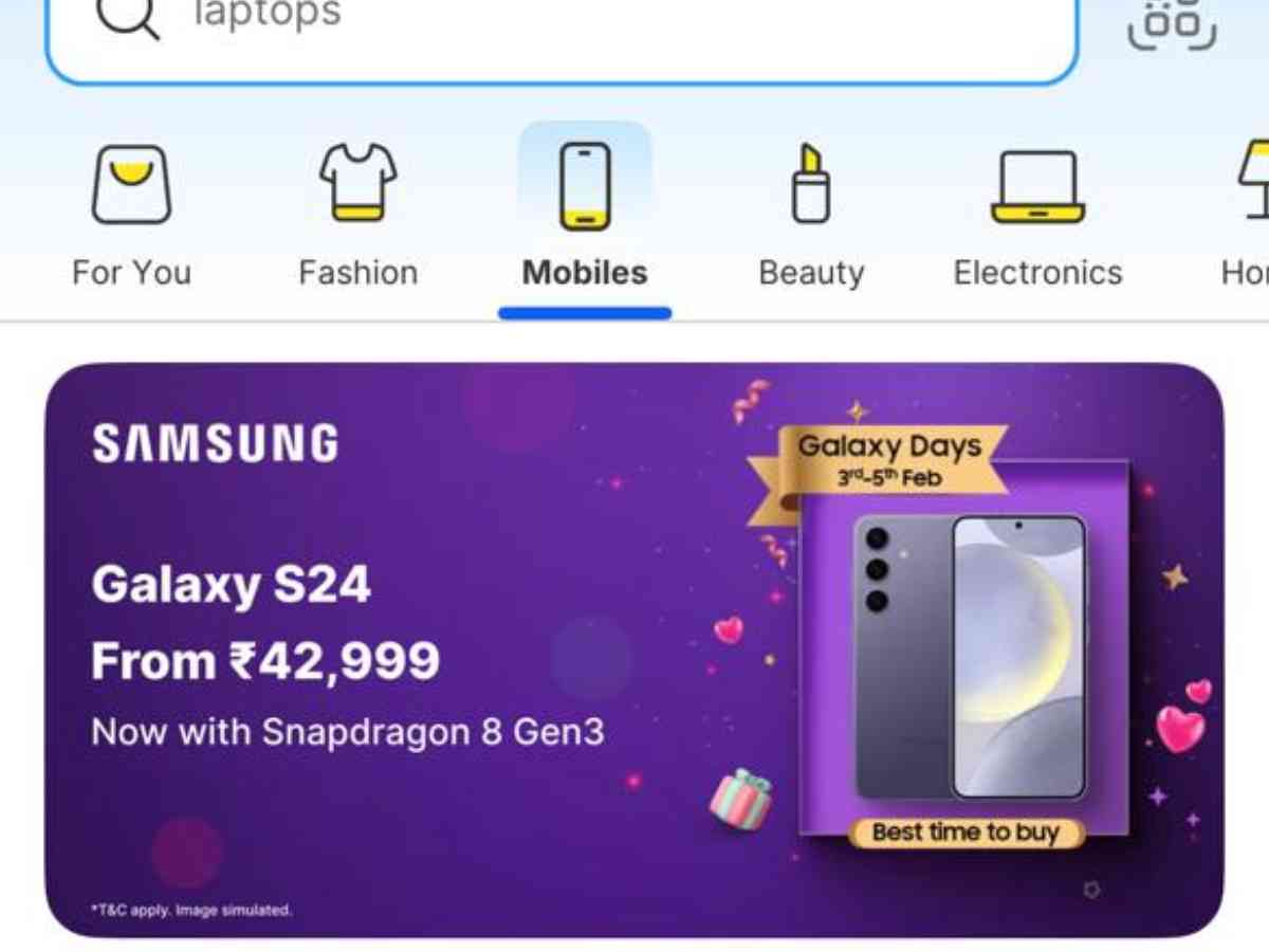 Flipkart की Galaxy Days सेल में सिर्फ स्मार्टफोन ही नहीं, बल्कि सैमसंग के टैबलेट, लैपटॉप और वियरेबल्स पर भी शानदार ऑफर्स दिए जा रहे हैं। अगर आप लंबे समय से किसी प्रीमियम स्मार्टफोन को खरीदने की सोच रहे थे, तो यह सही समय हो सकता है। खास बात यह है कि Galaxy S24 जैसे फ्लैगशिप फोन पर इतनी बड़ी छूट बहुत कम देखने को मिलती है। और पढें: Flipkart Buy Buy 2025 Sale: इस तारीख से शुरू होगी सेल, iPhone 16 से लेकर Samsung S24 तक सब कुछ मिलेगा सस्ता