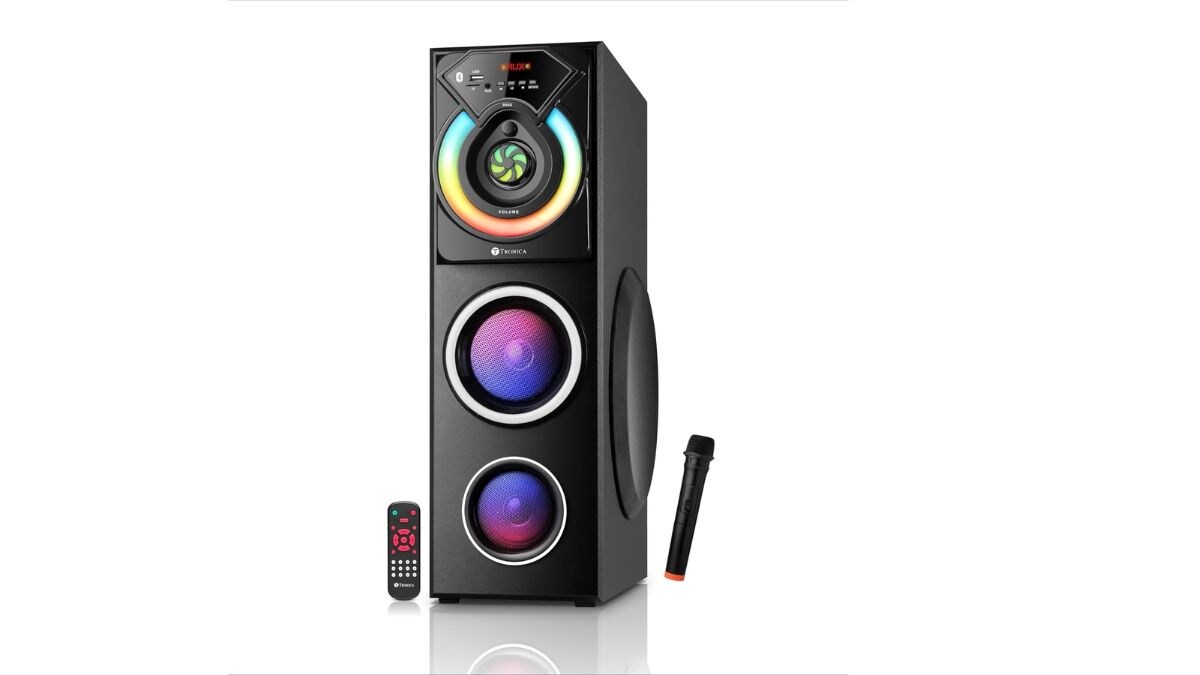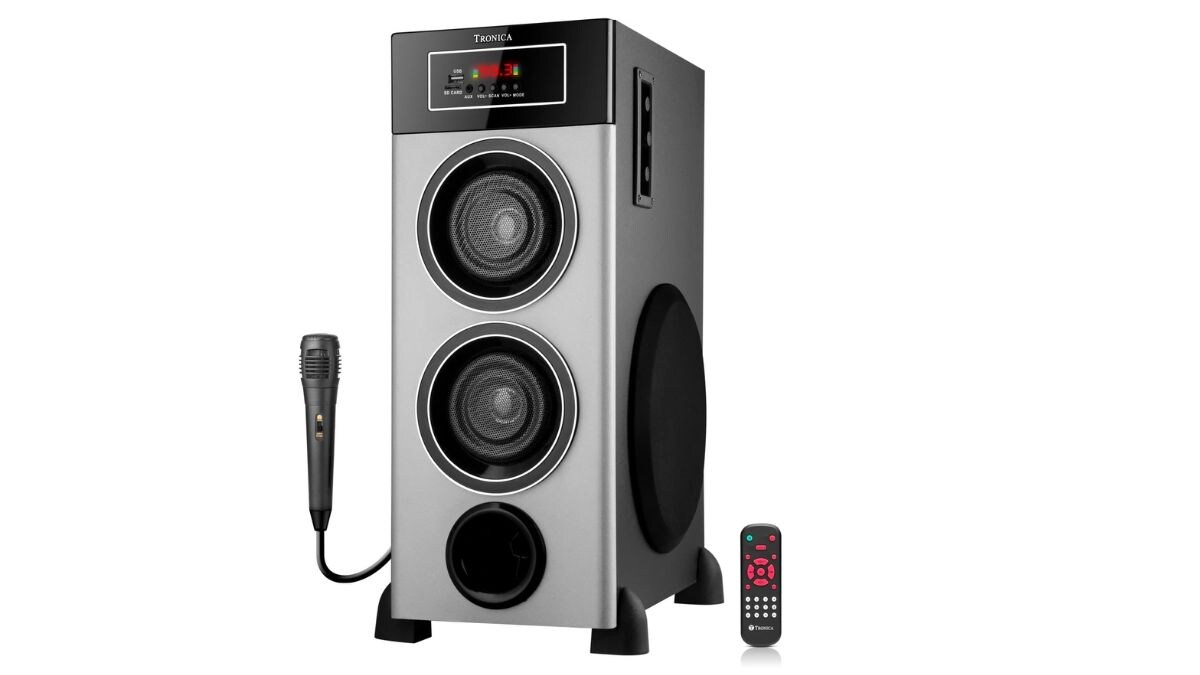 Tronica RIDHAM 4 – The Powerful Bluetooth 80W Home Theater DJ Speaker की कीमत अमेजन पर 6000 रुपये लिस्ट है, जिसे 17 प्रतिशत डिस्काउंट के बाद 4999 रुपये में खरीदा जा सकता है। इस स्पीकर में 100W साउंड आउटपुट दिया गया है।