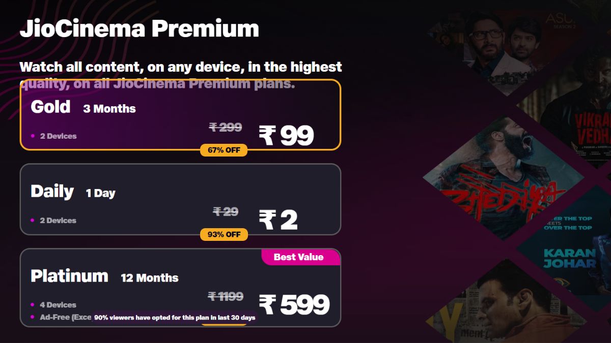 - JioCinema Premium का सबसे सस्ता प्लान 2 रुपये का होगा