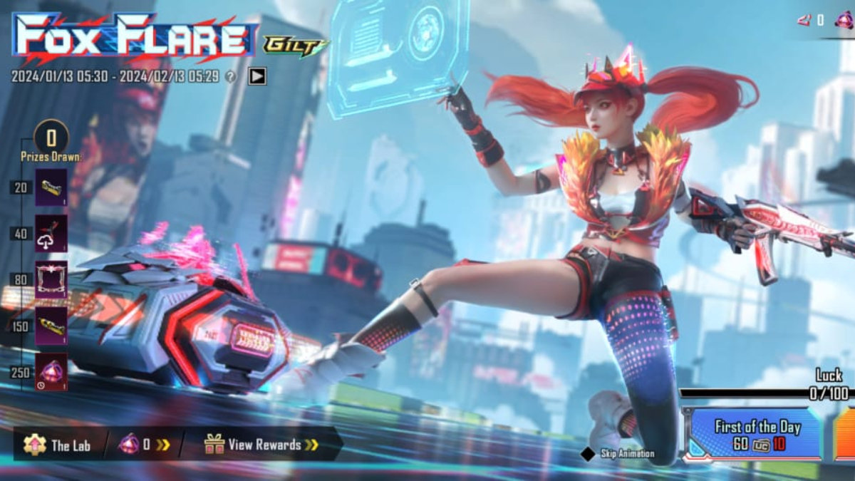 बीजीएमआई का यह खास इवेंट 1 जनरवरी 2024 से लाइव हुआ था, जो कि 13 फरवरी 2024 तक चलेगा। इसमें प्लेयर्स को Fox Flare आउटफिट जीतने का मौका मिल रहा है। इसके अलावा, रिंग और गन स्किन भी रिवॉर्ड के तौर पर दी जा रही हैं। हालांकि, इसके लिए आपको इन गेम करेंसी UC का इस्तेमाल करना होगा।