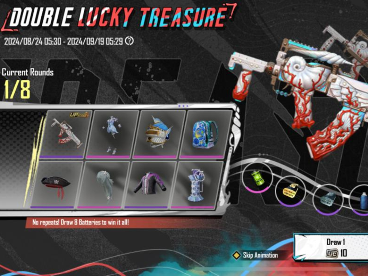 BGMI में शानदार इवेंट एक्टिव है। इसका नाम Double Lucky Treasure है, जिसमें Primordial Remnants Skin और Rippling Charm Set मिल रहा है। इसके अलावा, पेंट और ग्रेनेड स्किन जैसे आइटम्स भी मिल रहे हैं।