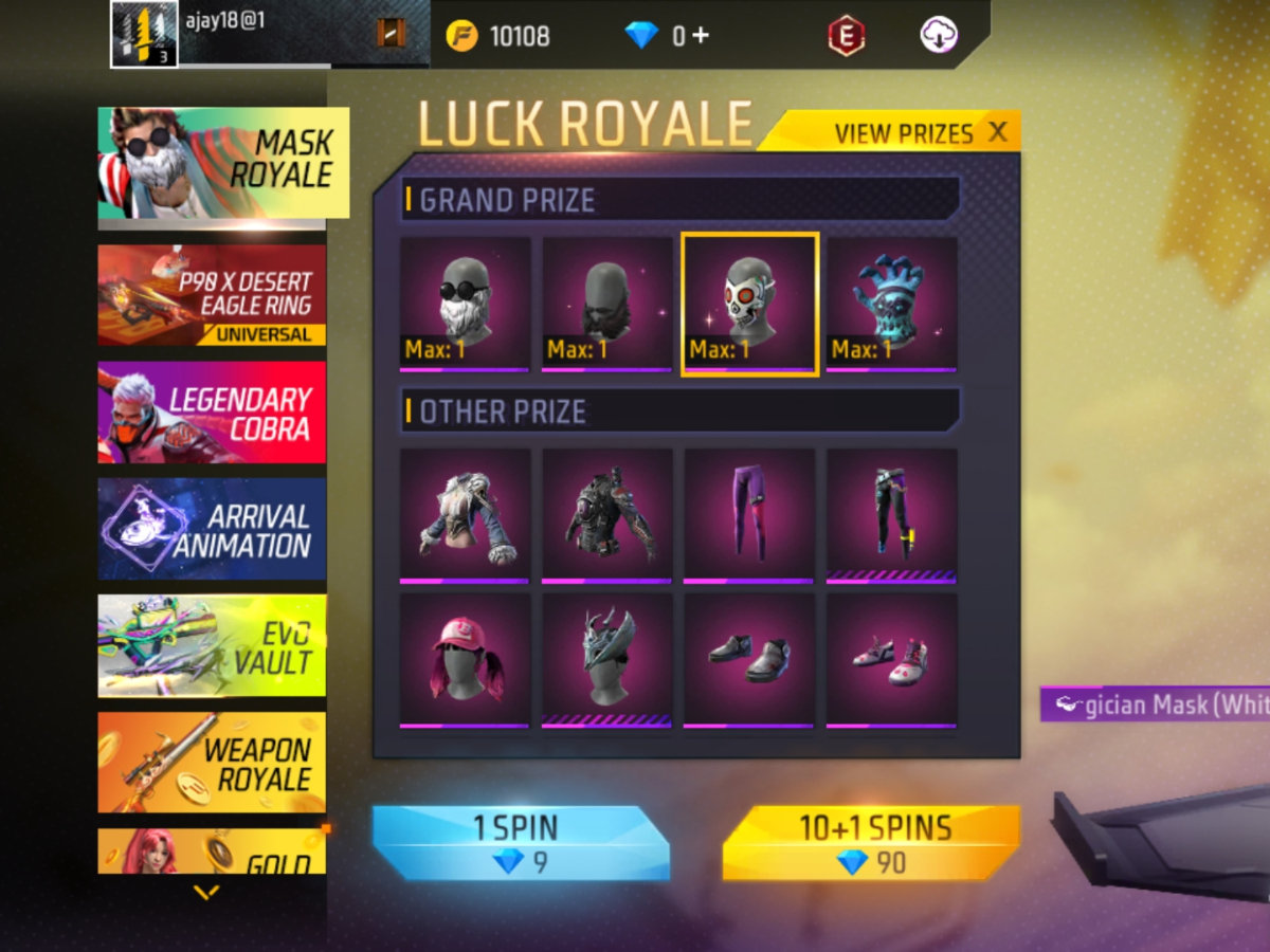 Free Fire Max Mask Royale