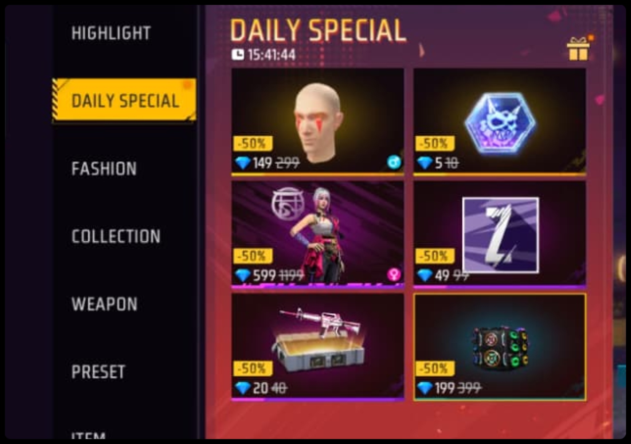 Free Fire Max की Color Vibes Gloo Wall Skin को आप आधी कीमत में डेली स्पेशल स्टोर से पा सकते हैं। इस स्टोर की खूबी ही इसका डिस्काउंट लेवल है। इस स्टोर से आप सभी आइटम्स को आधी कीमत में खरीद सकते हैं। दरअसल, इस स्टोर पर मिलने वाले सभी आइटम्स पर 50 प्रतिशत डिस्काउंट मिलता है, जिसकी वजह से आप उन्हें आधे रेट में खरीद सकते हैं। फ्री फायर मैक्स गेम में किसी भी इन-गेम आइटम को खरीदने के लिए इन-गेम करेंसी की जरूरत पड़ती है, जो कि डायमंड्स है। डायमंड्स को गेम में असली पैसों से खरीदा जाता है। डेली स्पेशल से आइटम्स खरीदने पर आपके आधे डायमंड्स सेव हो जाते हैं। यहां देखें आज डेली स्पेशल स्टोर में क्या कुछ मिल रहा है।