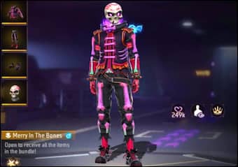 1. Merry In The Bones Bundle की कीमत 1149 डायमंड्स है, जो कि फ्री फायर मैक्स गेम में आपको 749 डायमंड्स में मिल रहा है।