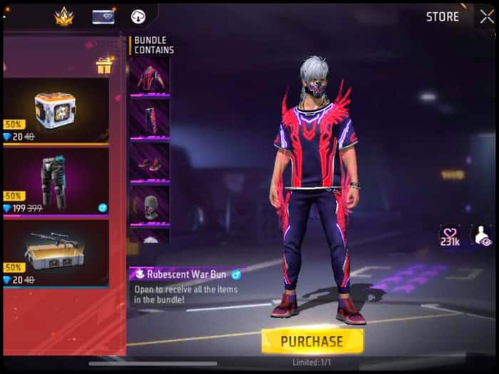 Rubescent War Bundle की कीमत 1199 डायमंड्स है, जो कि डेली स्पेशल से में आपको 599 डायमंड्स में मिलेगा।