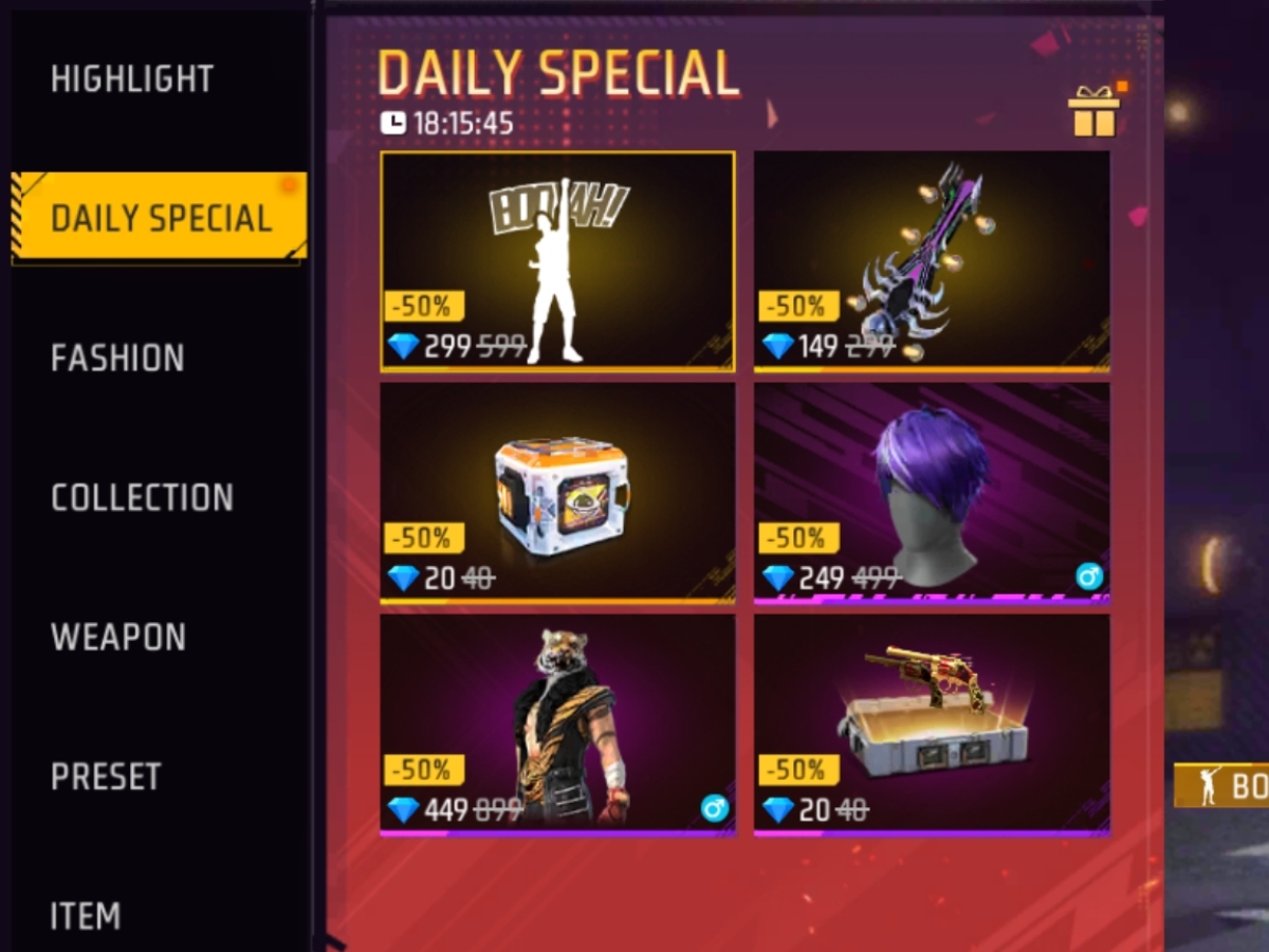 Free Fire Max में एक्टिव हुआ Daily Special स्टोर, आधी कीमत में मिल रहा Booyah इमोट