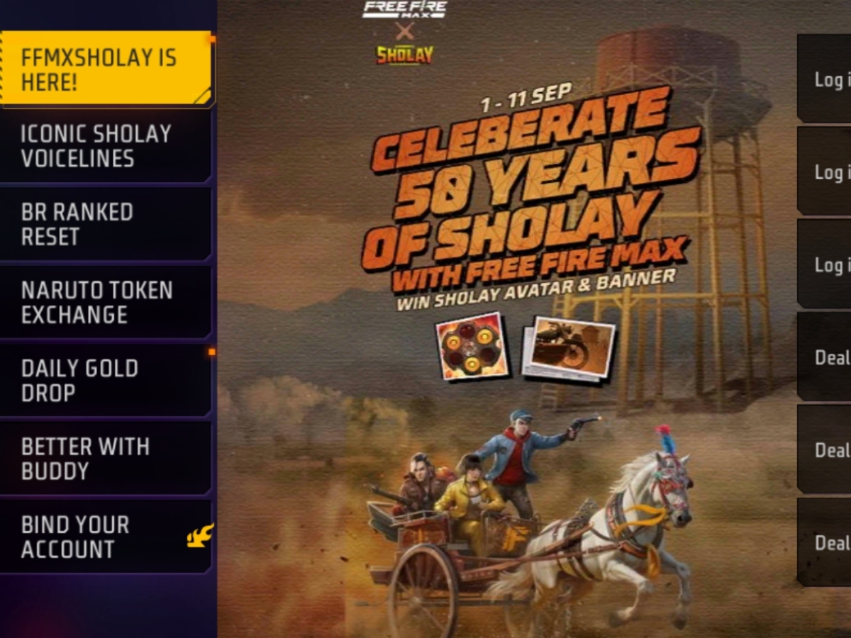 Free Fire Max में Sholay के 50 साल पूरे होने की खुशी में FFMSHOLAY IS HERE! इवेंट जारी किया गया है। इसमें 2500 गोल्ड कॉइन के साथ शोले बैनर और अवतार फ्री में मिल रहा है।