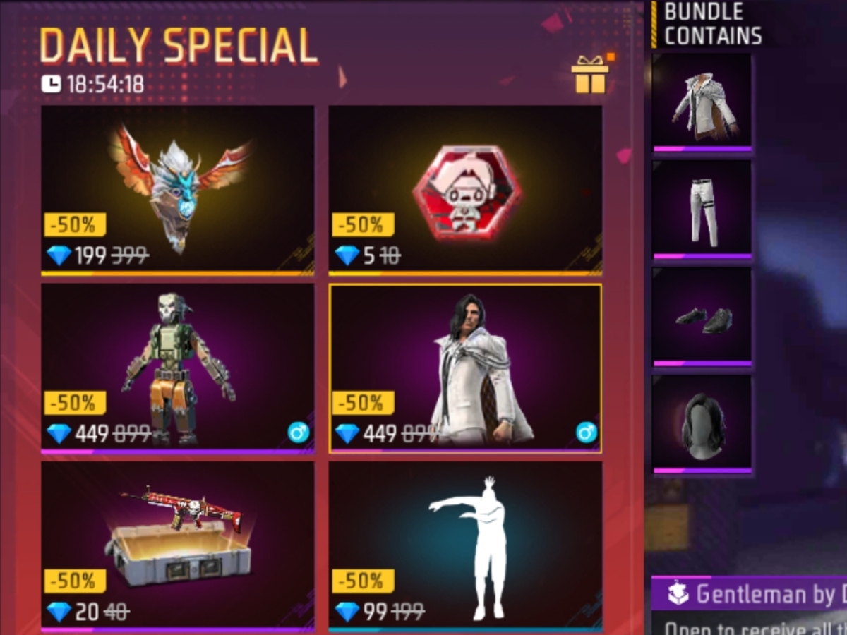- Gentleman By Day बंडल अन्य आइटम्स की तरह डेली स्पेशल में 449 डायमंड में अवेलेबल है। इसकी असल कीमत 899 डायमंड है।