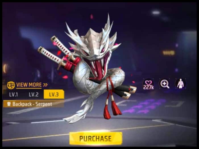 Serpent Backpack को 199 डायमंड्स में पाया जा सकता है, जो कि आम दिनों में 399 डायमंड्स में मिलता है।