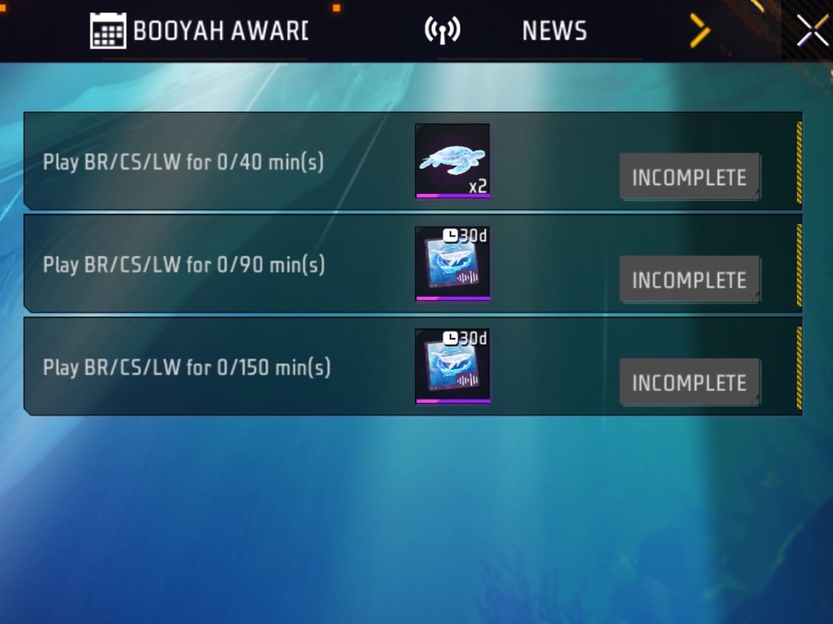 1. 40 मिनट BR/CS/LW मैच खेलने पर Sea Turtle कार्ड दिया जा रहा है।