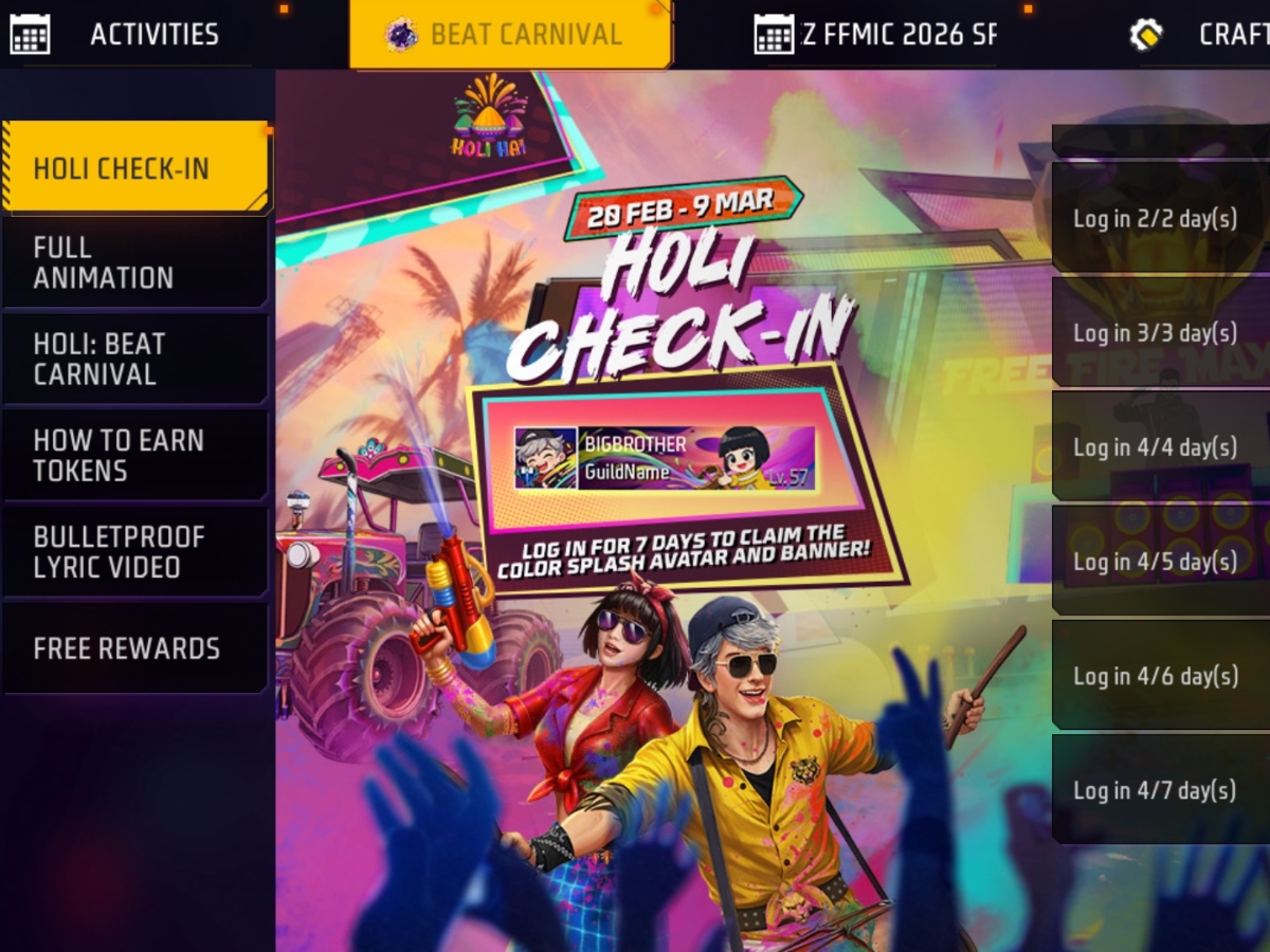 फ्री फायर मैक्स का होली चेक-इन इवेंट लाइव है। यह 9 मार्च 2026 तक लाइव रहेगा। इस दौरान टास्क पूरा करके रिवॉर्ड्स अपने नाम किए जा सकते हैं। इस फेस्टिव इवेंट को 20 फरवरी को लाइव किया गया था।
