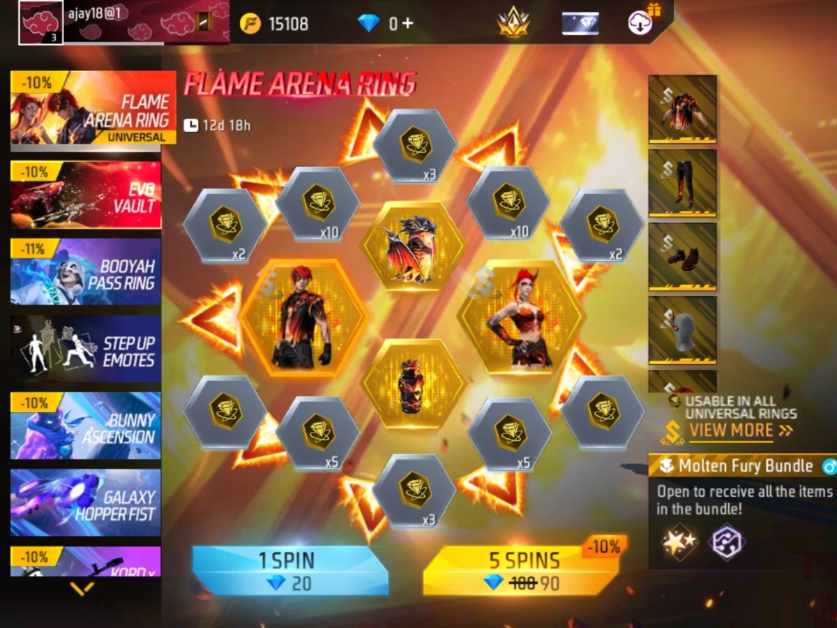 Free Fire Max का Flame Arena Ring इवेंट बेहद शानदार है। यह लक रॉयल इवेंट है। इसमें Molten Fury बंडल मिल रहा है, जिसका इस्तेमाल मेल गेमर्स कर सकते हैं। इसके साथ, Lava Fury बंडल भी दिया जा रहा है। यह फीमेल खिलाड़ियों के लिए है।