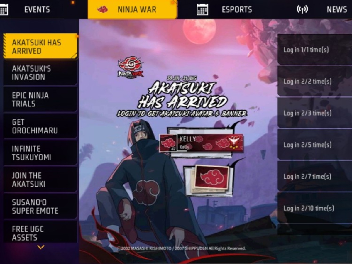 4. दो दिन में पांच बार लॉग-इन करने पर Akatsuki Theme Avatar मिल रहा है।